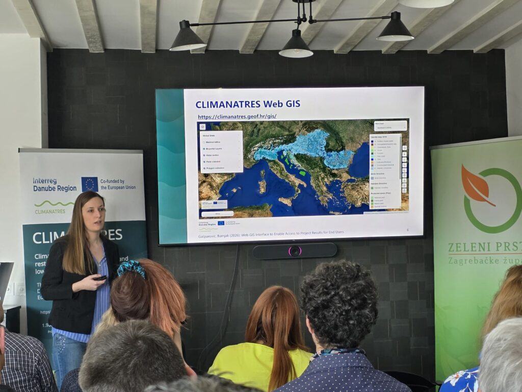 Poseban naglasak stavljen je na tehnološku podršku projektu. Katarina Barnjak predstavila je Web GIS sučelje koje razvija Geodetski fakultet, a koje će krajnjim korisnicima omogućiti jednostavan pristup rezultatima projekta i olakšati donošenje odluka temeljenih na podacima.